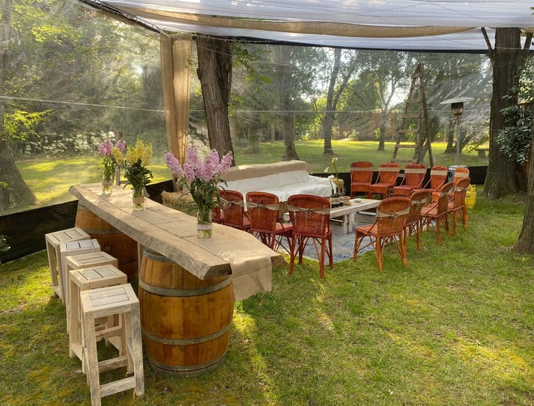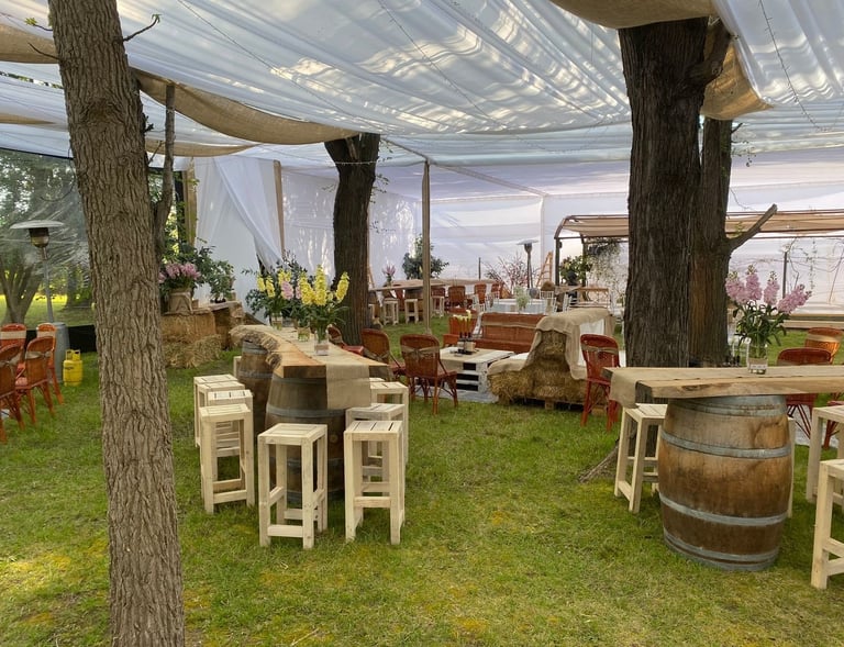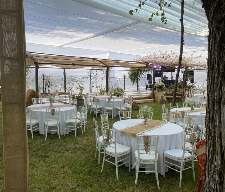 Contamos con una amplia variedad de carpas que combinan funcionalidad y estética, disponibles en telas blancas, negras, beige y arpilleras. Nos preocupamos por cada detalle, desde el montaje hasta la presentación final, para que tu evento cuente con una ambientación única, cómoda y segura. Cubrimos toda la Sexta Región y trabajamos con compromiso para que vivas una experiencia inolvidable, sin preocuparte por el clima ni los imprevistos.