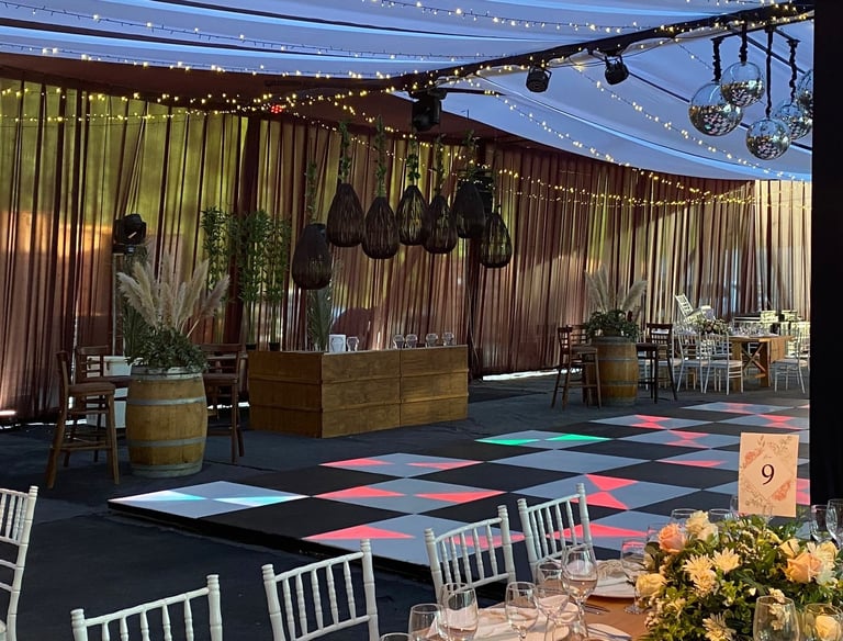 Pistas de baile y estufas para asegurar la comodidad y diversión en tu evento.